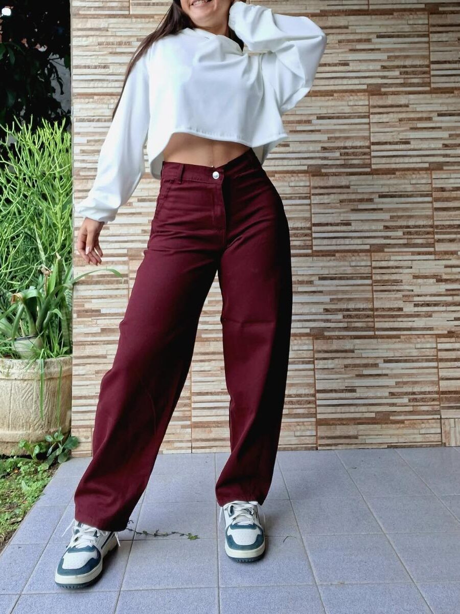 Jeans Baggy Bordo Rígido
