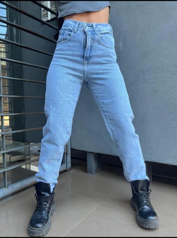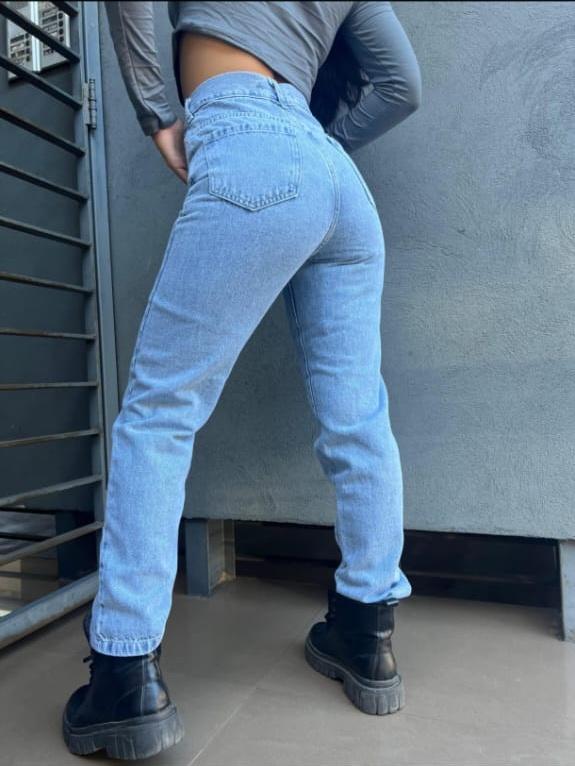 Jeans Mom Celeste Claro Rígido