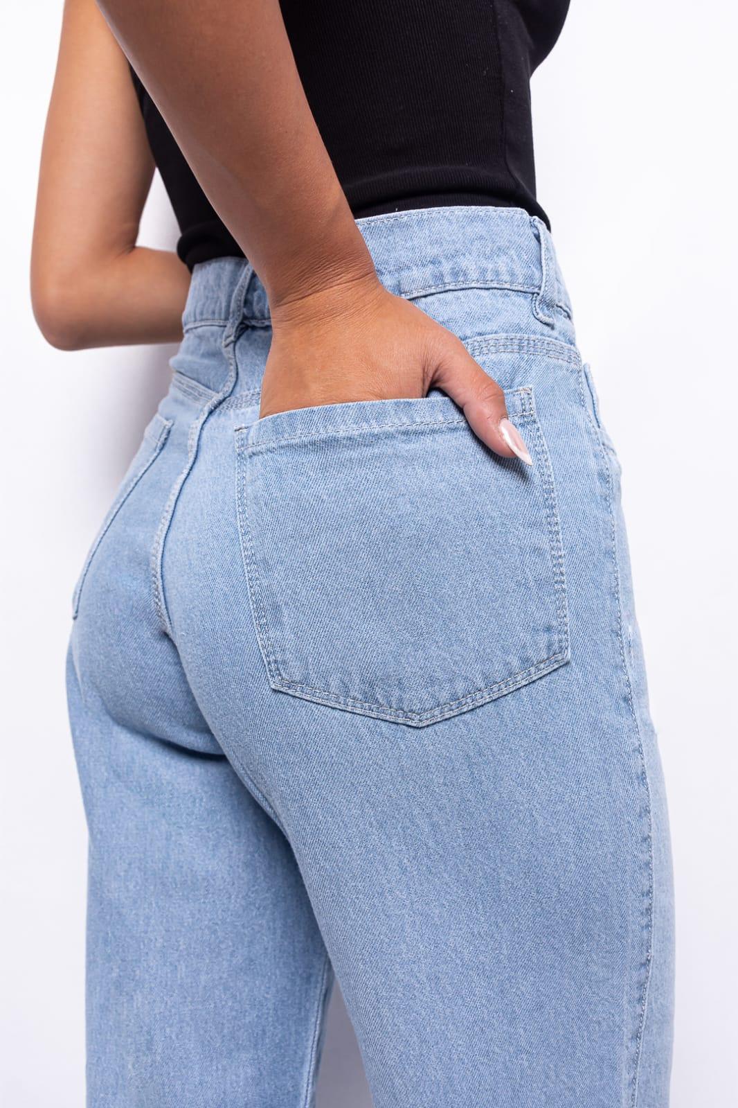 Wide Leg Celeste Claro Rígido