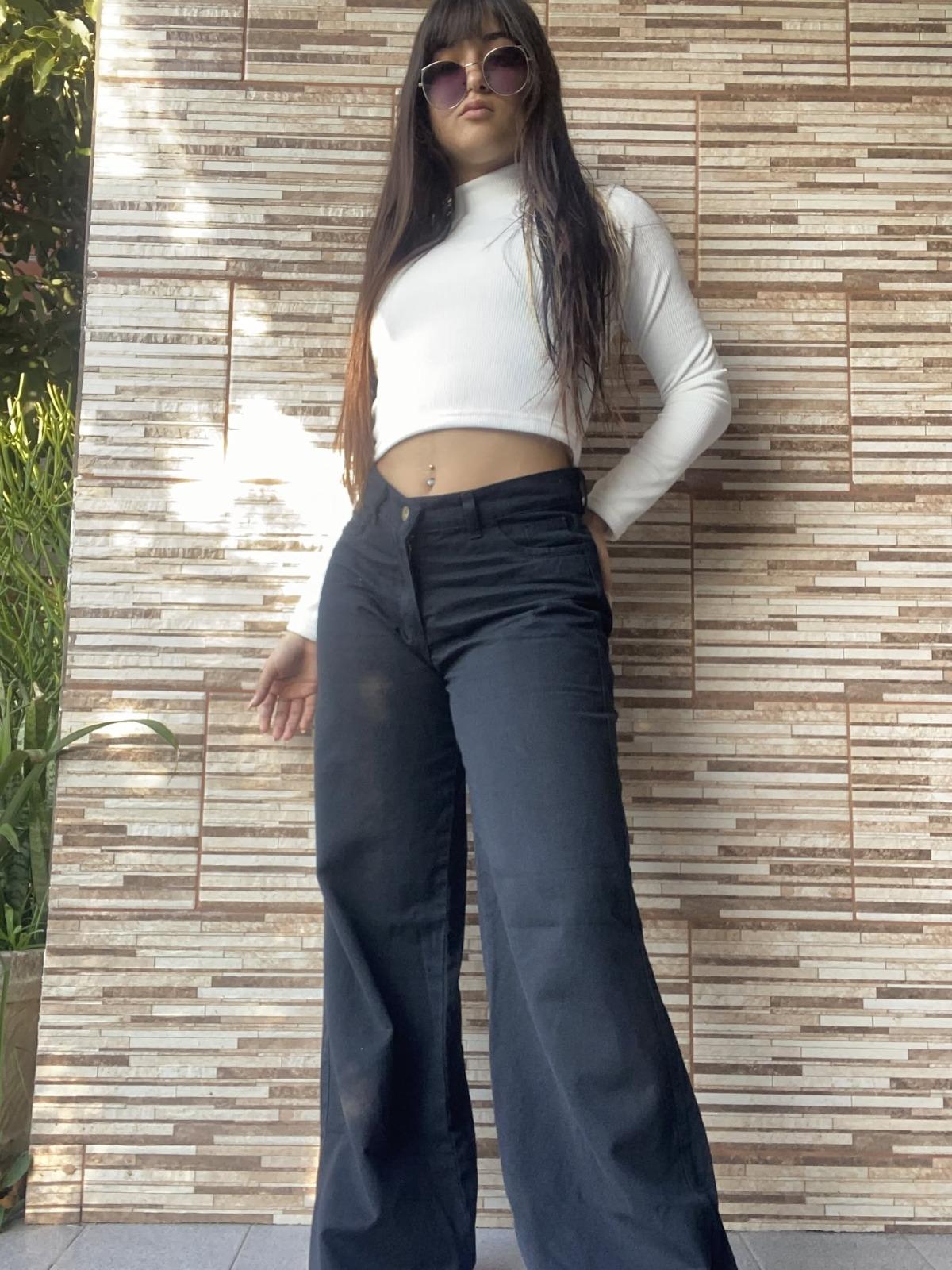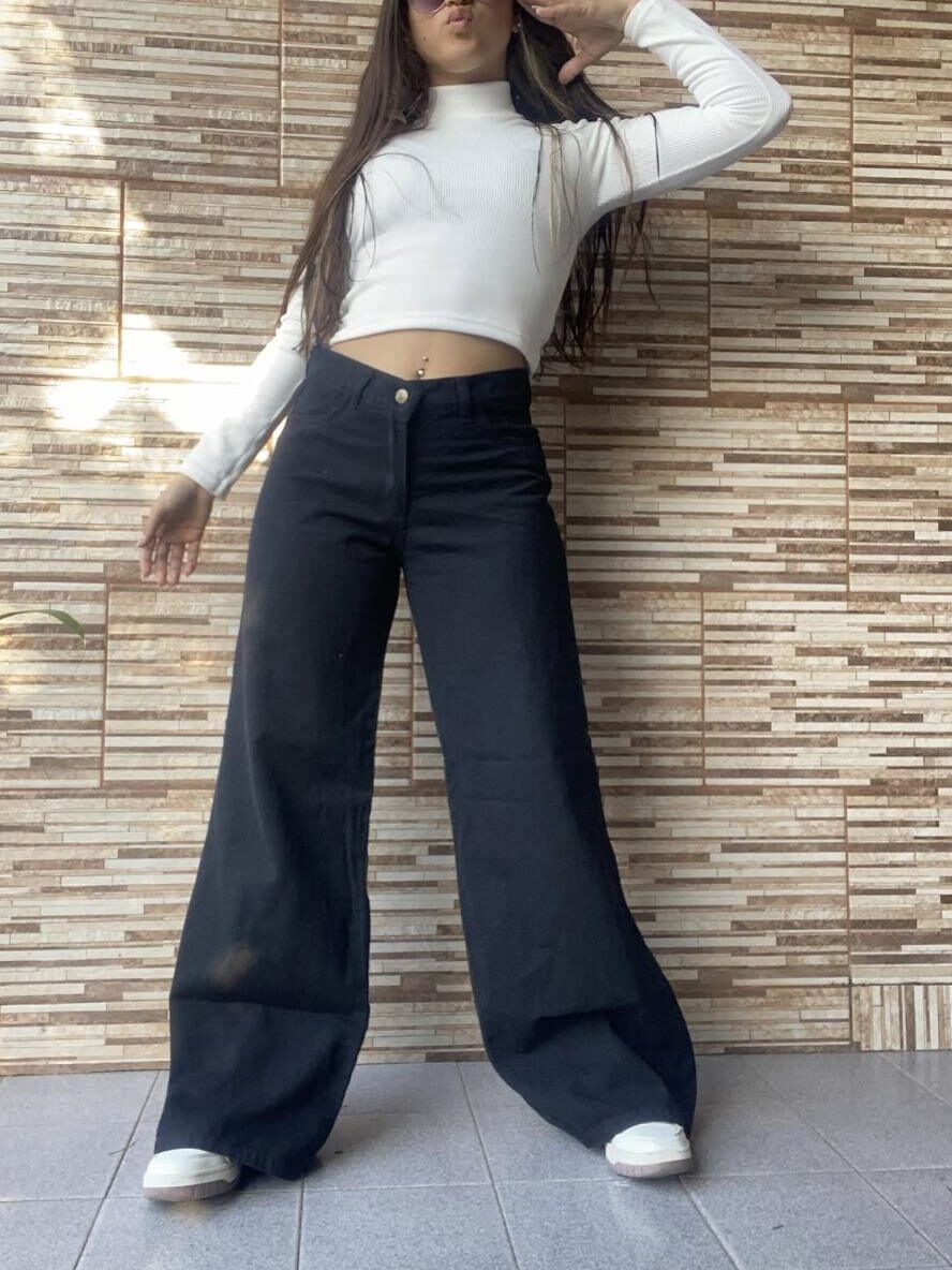 wide leg strech negro rígido